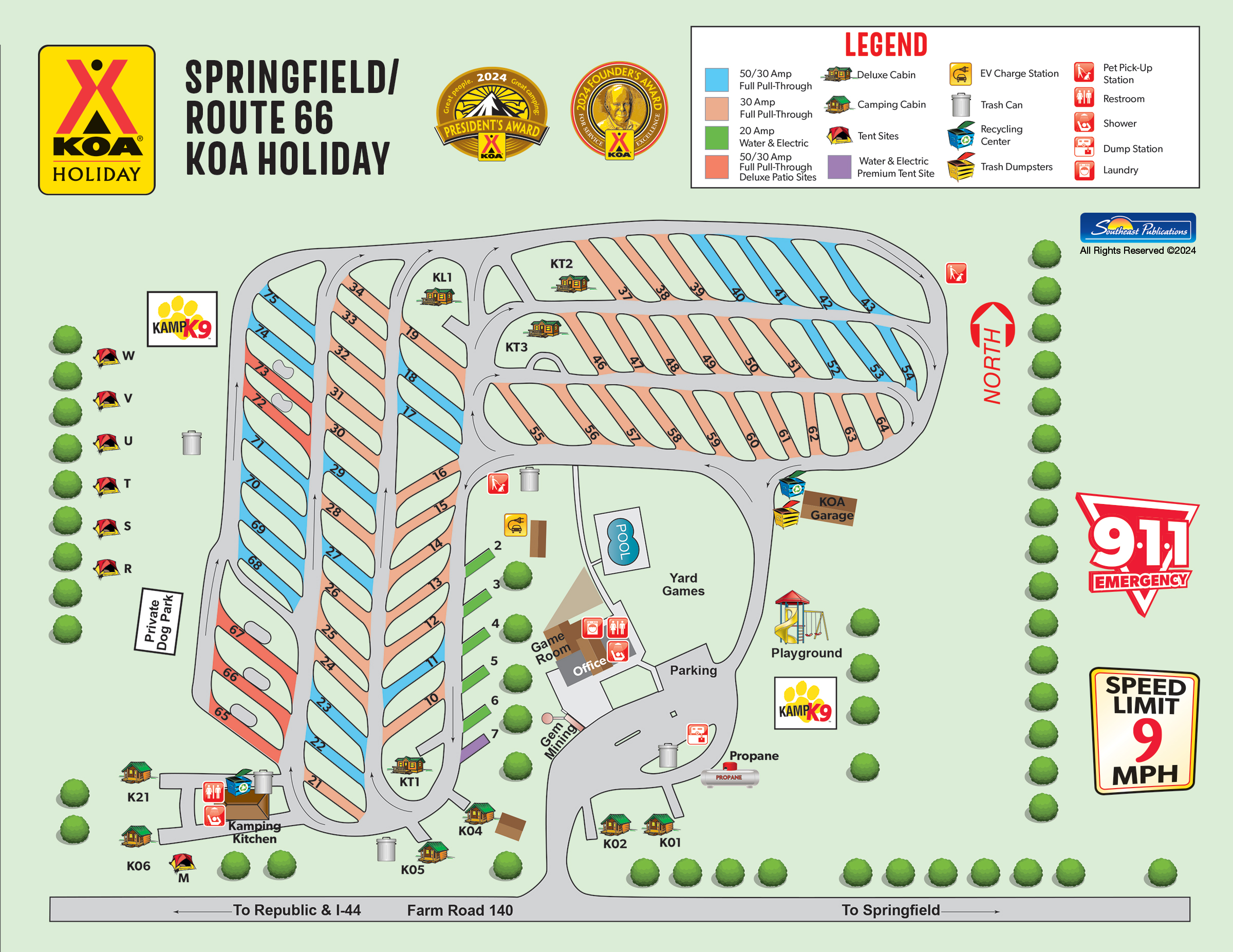 KOA Campground Map | Springfield/Route 66 KOA Holiday