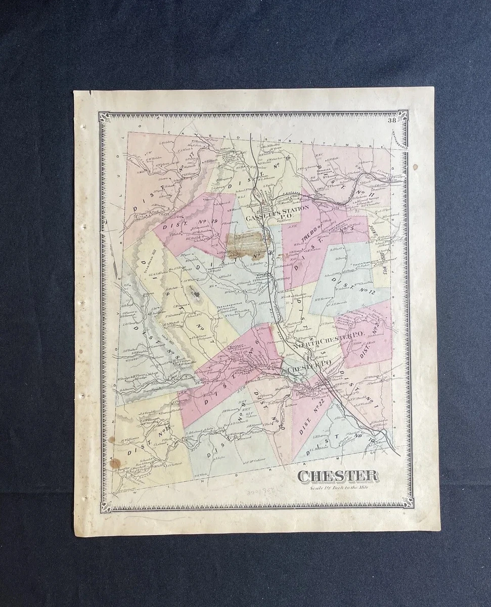 1869 Antique Map of Chester Vermont VT by FW Beers ORIGINAL | eBay