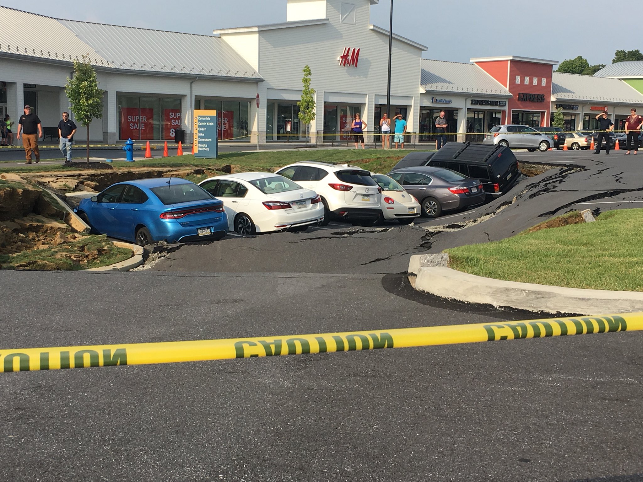 Tyler Schwind on X: “Massive sinkhole at the Tanger Outlets in