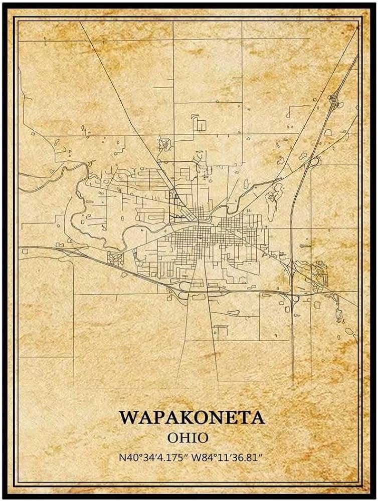 Amazon. TANOKCRS Wapakoneta Ohio USA America Vintage Map