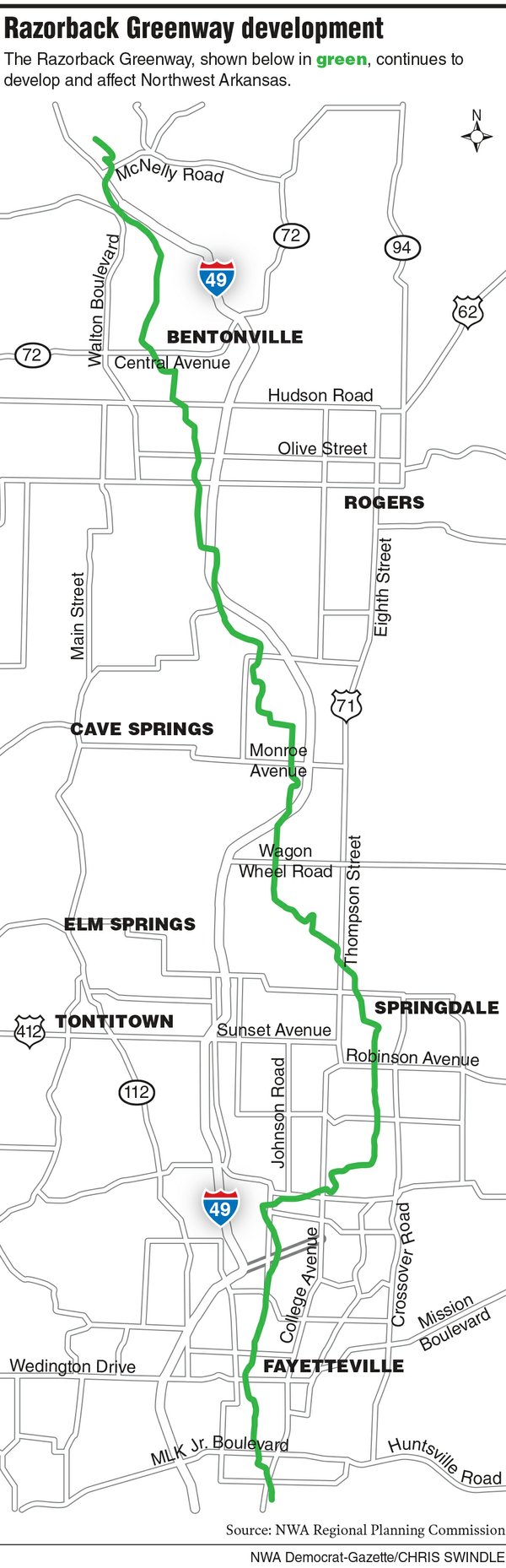 Razorback Greenway Trail Map Pdf – FAYETTEVILLE, Ark. (KNWA/KFTA) — A section of the Razorback Greenway will close for repair on Tuesday, March 5. The work will replace a 150-foot-long section of cracked concrete just south of . PADUCAH — Parts of a local walking and biking trail will be closed for the time being as the construction of a big upcoming project is in the works. The gravel portion of the Greenway Trail and .